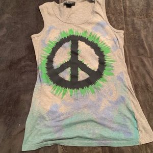 Gray tank top with blue and green peace sign. Cute worn by itself or under and open button up