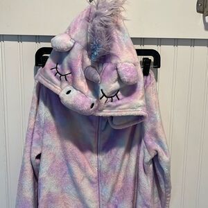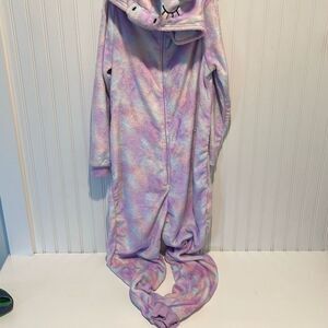 Peace Love & Dreams Womens Tie Dye Unicorn Hooded Onesie Pajama Purple Sz Large