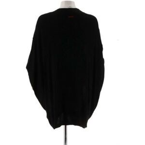 Features: snap-button front; long sleeves; rib details on cuffs, sides, and back; seam details on front and back; deep V-neckline; two front hip pockets; front hip leather logo patch; dolman sleeves