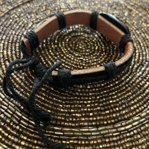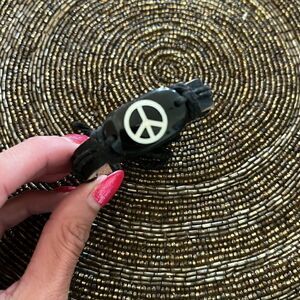 Peace Sign Black Leather Adjustable Peace Sign Pendant Bracelet
