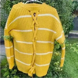 Peacebird- Knit Dark Mustard Yellow With White Stripes Very thick and amazing knit