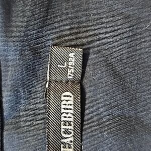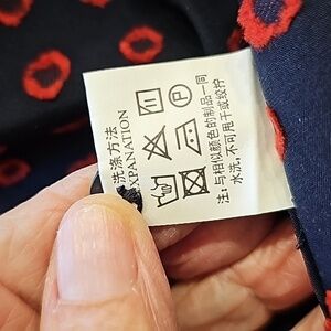 Peacebirt women's navy blue shirt red dots button down. Size large. Great fabric