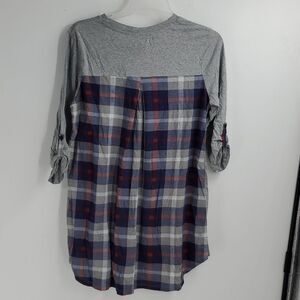 peace love dreams multi color blouse 3/4 sleeve with buttons pockets in front Gently worn