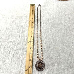 Peach Beads Copper Tone Chain Large Flower Pendant Boho Necklace