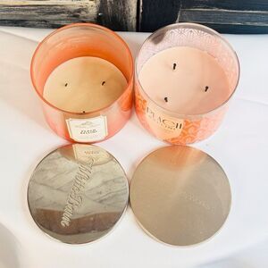 Set of 2 Peach Bellini 3-Wick candles, Used