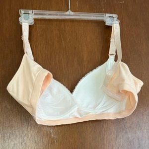 Peach Breastfeeding Nursing Bra size 40. Not much info on this one. No brand name unless it's breastfeeding bra. Made in China. I don't think it's been worn, but no tags. Even the materials are in chinese. 95% ?, 5%?