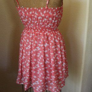 White butterflies, adjustable spaghetti straps and elastic neckline/waistline.