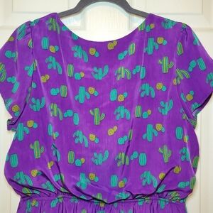 Peach California Cactus Print XL Purple blouson dress