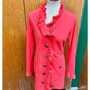 This jacket is so cute. Keys, mismatched buttons,color is peach. Length 31”. Pit to pit w1.6”. From a pet and s,one free home 🏡. Bundle three or more items for an additional 20% off.