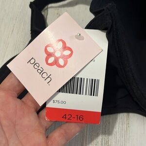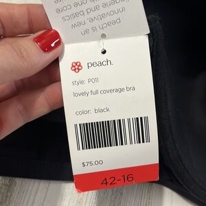 Peach Company Black Lovely Full Coverage Bra 42-16 44F