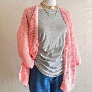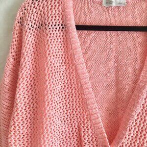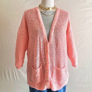 Peach Crochet Knit Cardigan Sweater Size L