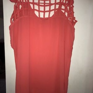 Really cute peach top from forever 21! Has Lattice detailing over the back of the shoulders, it's a bright peach color. Perfect for the last days of summer!