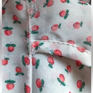 Peach Fruit Print Pussybow Blouse Juniors Large Retro Whimsical Secretary Geek