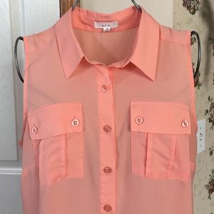 Comfortable and Fun! Peach color hi-low buttons up with pockets on bust!