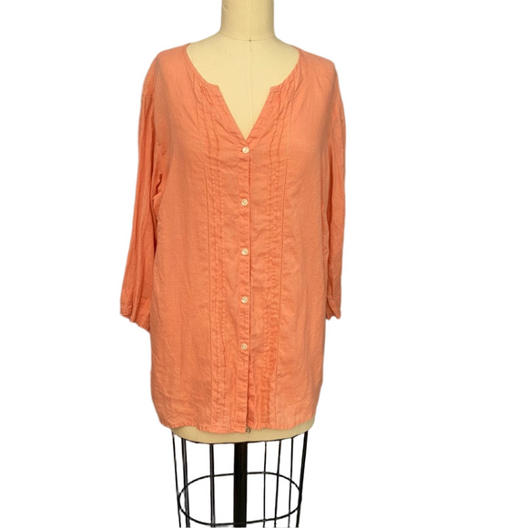 Peach Linen Blouse – Size 1X -Liz Claiborne Woman