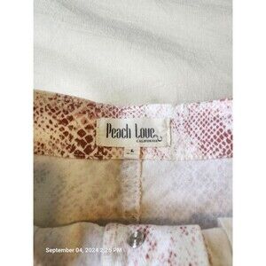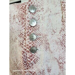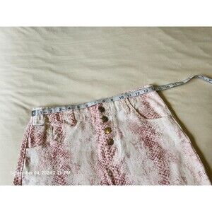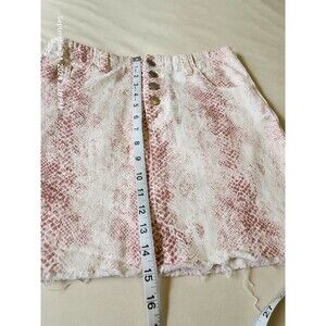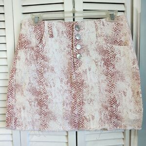 Peach Love Button Fly Denim Mini Skirt Ivory & Pink Snakeskin Raw Hem size 8