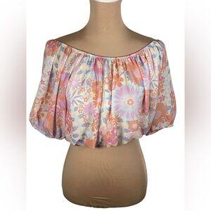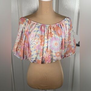 Peach Love California Floral Off-Shoulder Blouse - Pink and Cream Medium