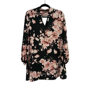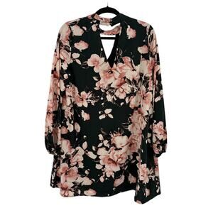 Peach Love California Floral Print Choker Shift Dress Pink BlackLarge Cut-Out