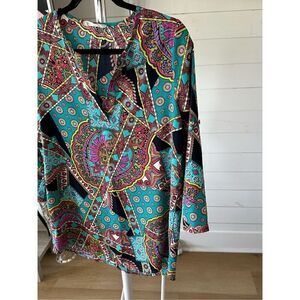 Peach Love California Geometric Print LS Tunic Womens M Multicolor Peasant Boho