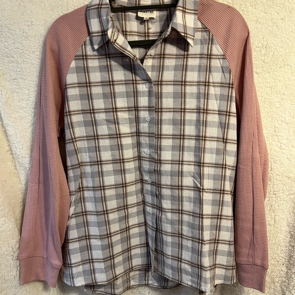 Peach Love California Pink and Gray Plaid Button Down Shirt