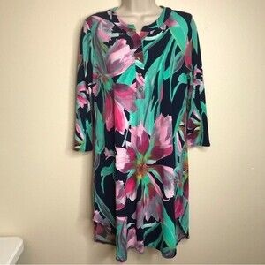 Peach Love California Popover Large Navy Floral Shirttail Dress Women Large