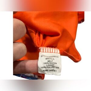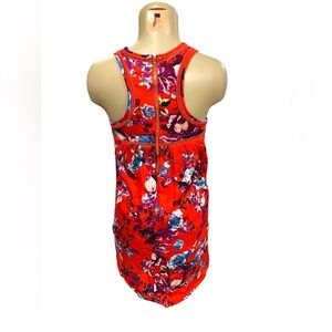 Cute red floral sundress by Peach Love of California. Dress is Rayon, lining is polyester, zip closure, size small. Laying flat measures 16" from underarm to underarm and 33" from shoulder to bottom. Good preowned condition with no holes or stains. Thank you for looking.