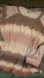 peach love California made in the US size small tie-dye long sleeve fitted top so cute it is tie-dye colors pink peach tan cream and a purple dark brownish this shirt is fitted to your curves long sleeve and a size small