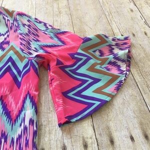 Excellent used condition Peach Love Top.  This is so cute and very beach looking.  I love this brand of clothing.  You will find a few of their items in my closet.  Button back closure