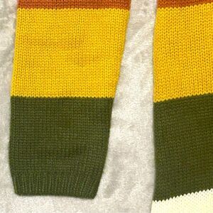Peach Love Dress Stripes Multi-Color Cable Knit Preppy Mini Long Sleeve