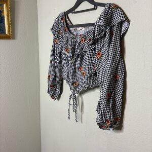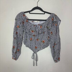 Peach Love Floral Gingham Crop Top Women's Top Size Large