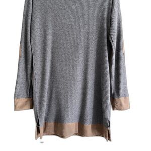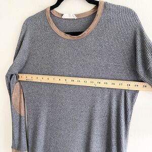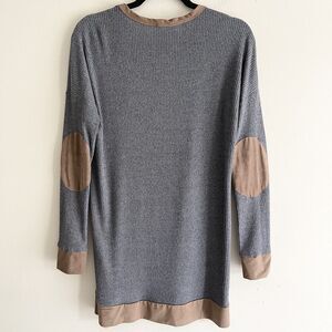 Peach Love Gray Waffle Knit Long Line Shirt S Brown Elbow Patch Soft California