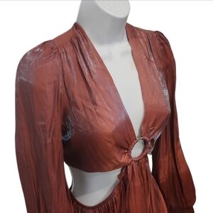 Peach Love Iridescent Cut Out Evening Party Dress