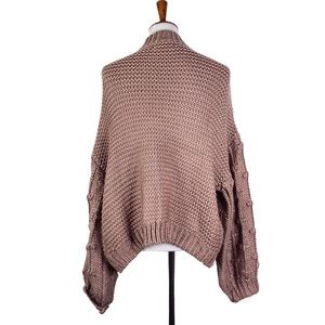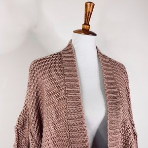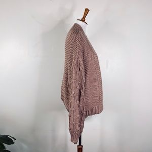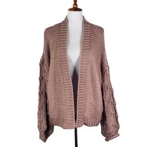 Peach Love California Oversized Chunky Knit Open Front Bubble Sleeve Sweater Sz. L