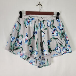 Peach Love Shorts Womens Small Gray High Rise Floral Lined Stretch Waist