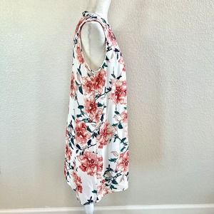 Peach Love Size Medium Pink Green Floral Ruffle Front Sun Dress Keyhole V Neck