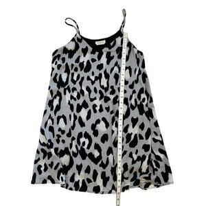 Peach Love California womens black and gray grey all over animal print strappy slip dress. Lightweight, spaghetti straps, v neckline, flowy pullover dress. Made in the USA. Excellent preowned condition EUC, no flaws. Professional, highly rated seller, quick shipper, open to offers!