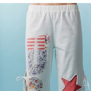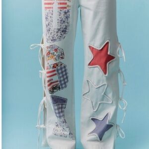 Peach Love “ Summer “ Peach Love Twill Pants with USA Patchwork Detail SR33