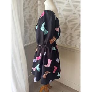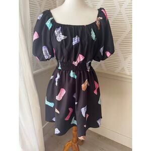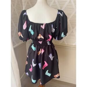 Peach Love Women’s Large Cowgirl Let’s Go Girls Black Boot Puff Sleeve Dress