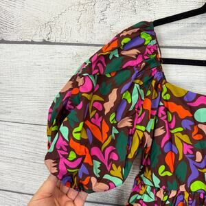 Peach Love Women's Square Neck Puff Sleeve Burgundy Colorful Dress Size Small