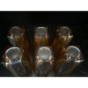 What a find!!!! 6 beautiful peach luster marigold Carnival Glass tumblers with square bottoms. These beauties are from the 1960's. The approximate dimensions are 2 3/4" D x 5" T. Each glass is in good condition, but please review all pictures, as your idea of good condition may be different from mine. Thanks for visiting.