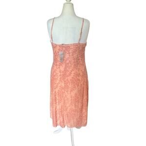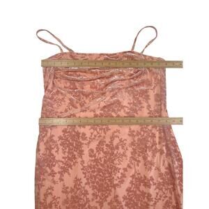 Peach Midi Stretch Slip Dress Women's Size XL Burnout Velvet , Ruched Bust, 43”L