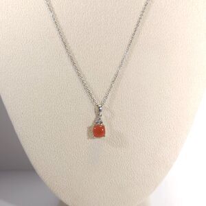 A lovely Peach Moonstone Pendant Necklace with White Topaz accents.