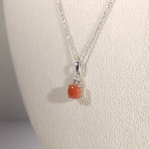 Peach Moonstone Pendant Necklace Stainless Steel Chain