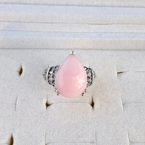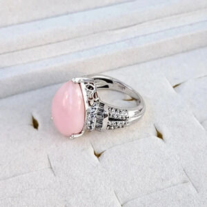Peach Opal & Natural Diamond Ring In 925 Sterling Silver