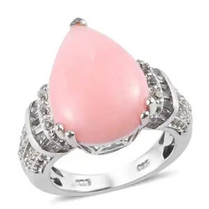 ~9.30 ct Pear Shaped Natural American Oregon Peach Opal Securely V-Pronged Tip With Double Pronged Settings.