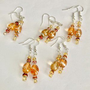Peach Orange Murano Art Glass Earrings Bead Hand Painted Round Silver Plated