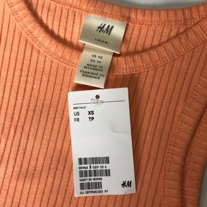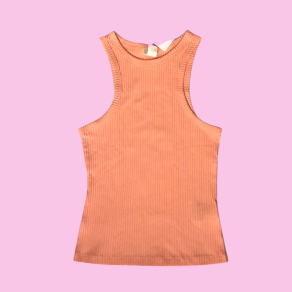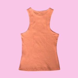 Features a ribbed material in a gorgeous pastel peach color, a racerback design, and the perfect tight fit. The perfect pop of color for all your outfits! NWT condition!