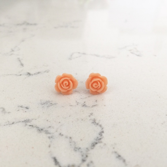 Precious little rose cabochons with stainless steel hardware. Comes in sealed packaging (photo is just a sample pair). 3/8" wide.