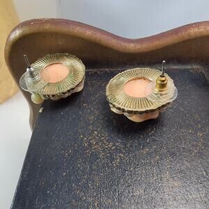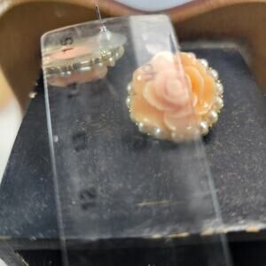 Peach Rose Stud Earrings with Pearl Border, Vintage Floral Statement Jewelry