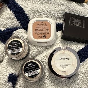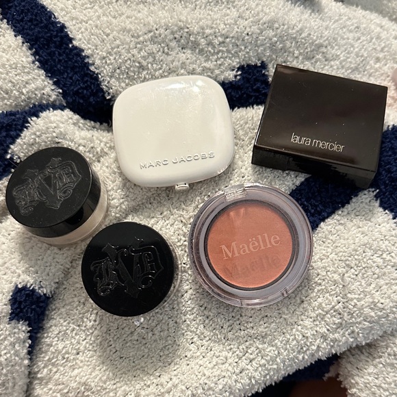 These are minis! 2 Mini KVD translucent powders, a Maelle blush, a Marc Jacobs tan tastic bronzer and a Laura mercier ginger eye color. So you get 5 minis.